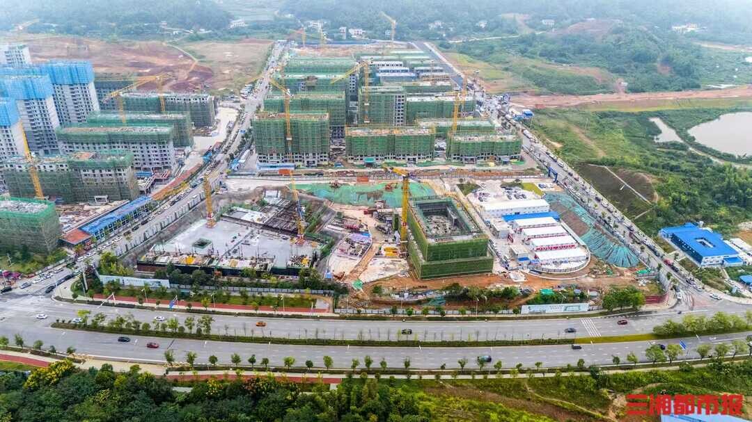 塔吊高耸,工程车穿梭,位于长沙梅溪湖国际新城二期未来社区内,一座规划48个班级、总建筑面积约3.3万平方米的现代化校园——木棉小学正拔地而起。9月11日,记者在项目施工现场看到,100余名工人正进行地下室主体、防水及保护层施工,同时推进1、2、4号栋的基础施工。
