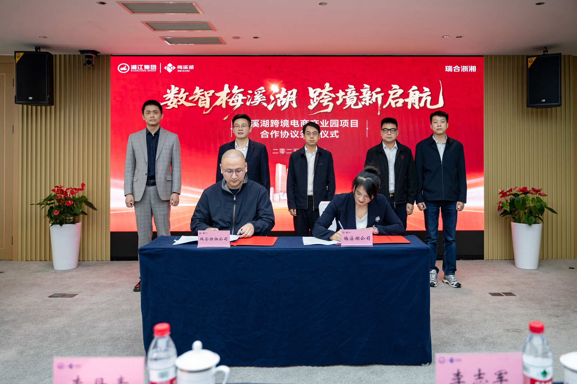 湘江集团党委副书记、董事、总经理李志军出席并致辞,湘江集团总经理助理,兼梅溪湖公司党委书记、董事长胥伸林主持,瑞合浙湘公司总经理李丹青,瑞合浙湘公司合伙人、宁波雷度商务公司总经理丰雷,湘江集团招商副总监、战略运营中心总经理张飏,梅溪湖公司董事、总经理王佳余及梅溪湖公司相关负责人参加。